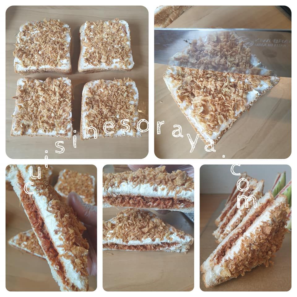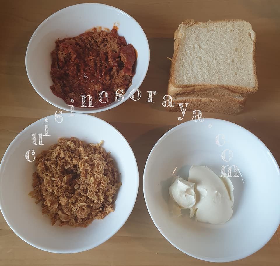 – Etalez du fromage frais et parsemez de crispy oignon.