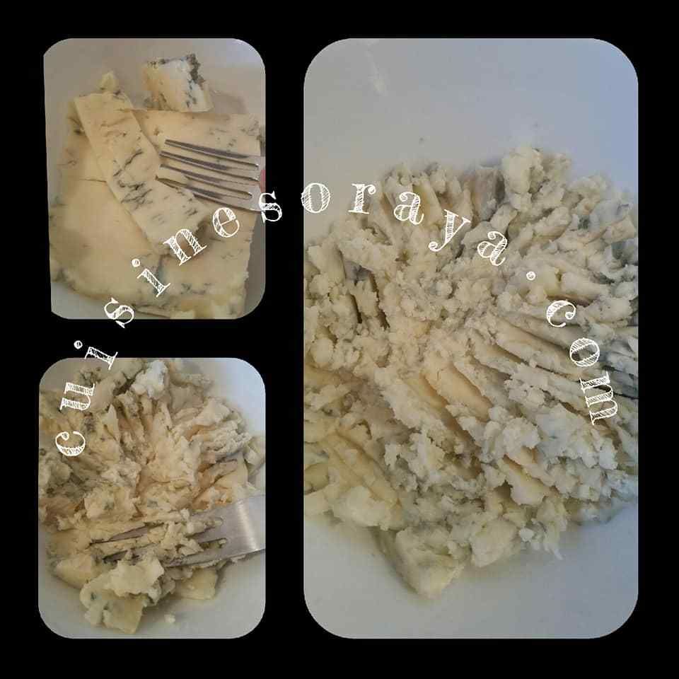 – Ecraser le gorgonzola avec l’aide d’une fourchette. Réserver.