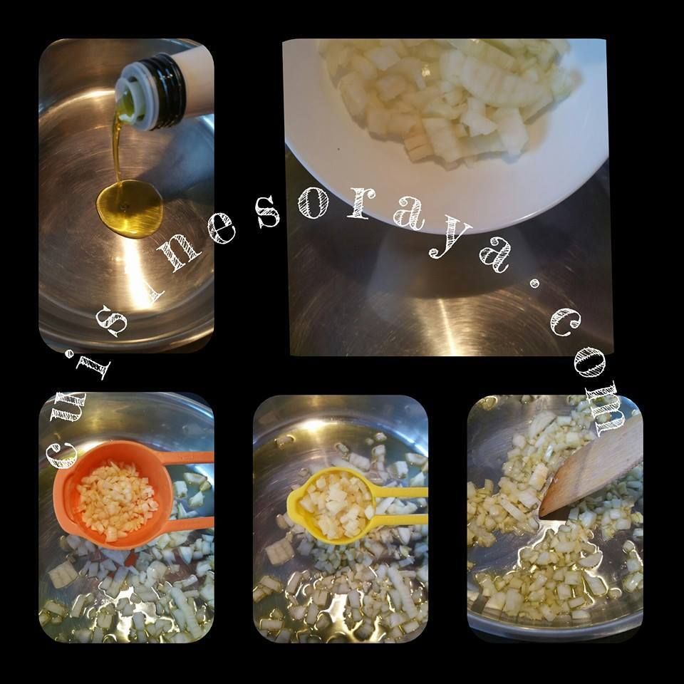 – Dans une sauteuse, mettre un filet d'huile d'olive, ajouter les oignons, l'ail et le gingembre et mélanger. Faites revenir environ 1 minute.