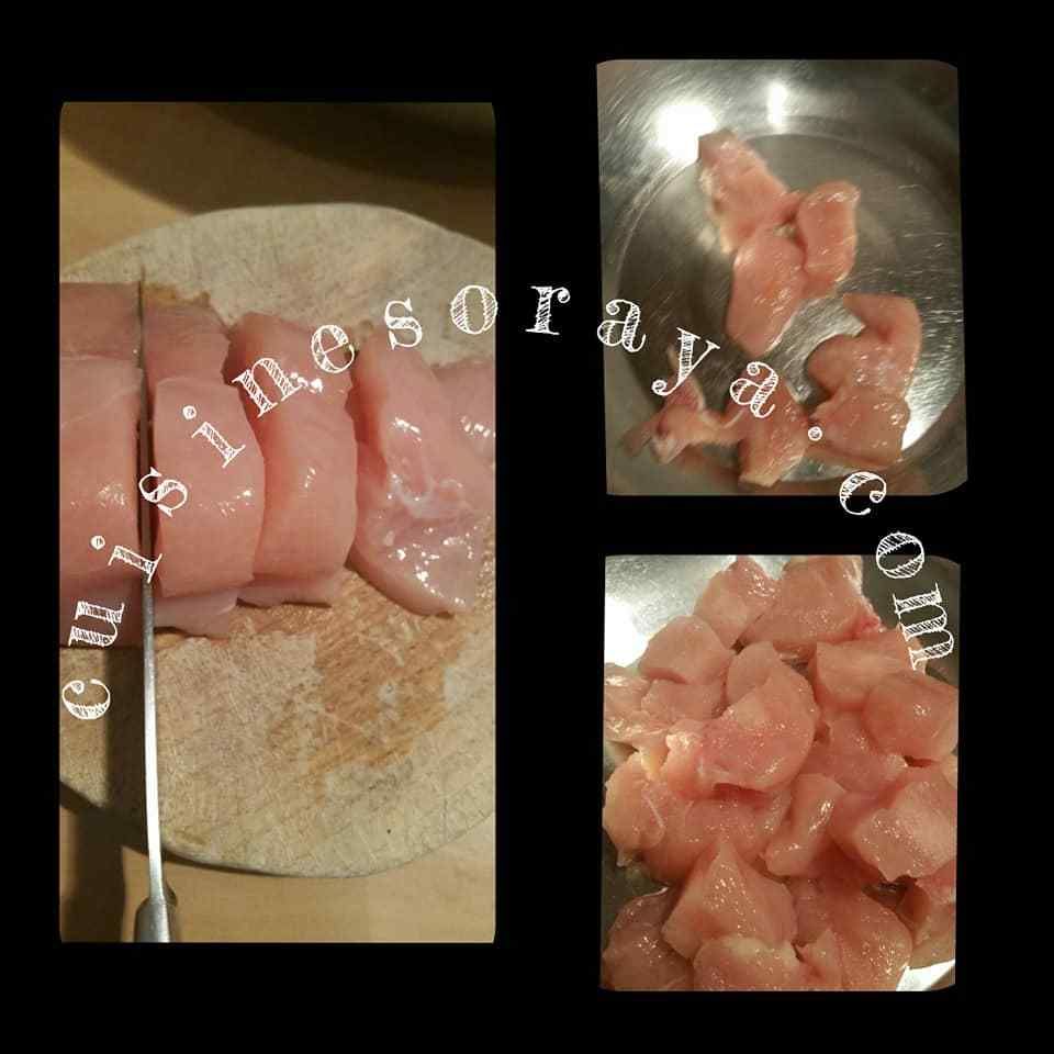 – Coupez le poulet en morceaux, et réserver dans un saladier.