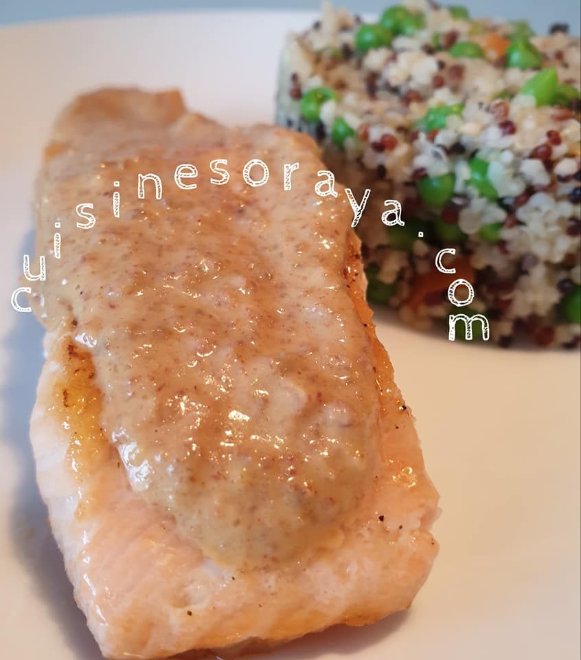 – Dans une poêle, faites cuire le saumon côté peau en premier ensuite le retourner environ 3 minutes selon votre goût.
