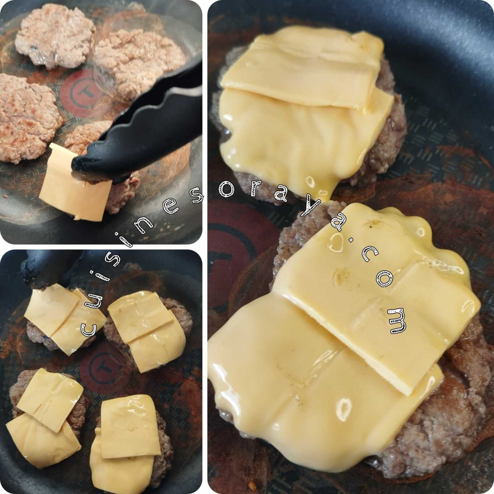 – Mettre 1/2 tranche de cheddar sur chaque steak.