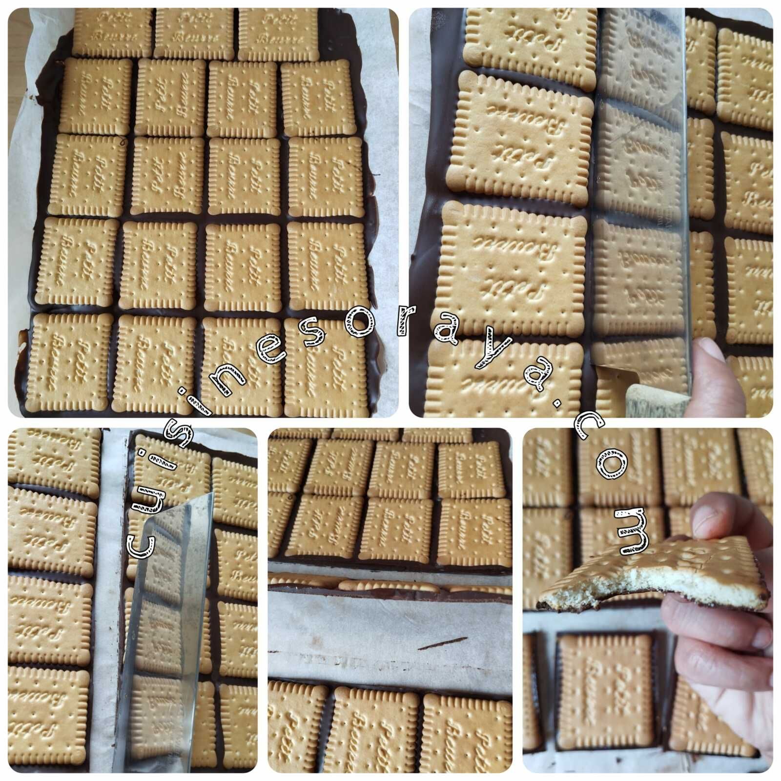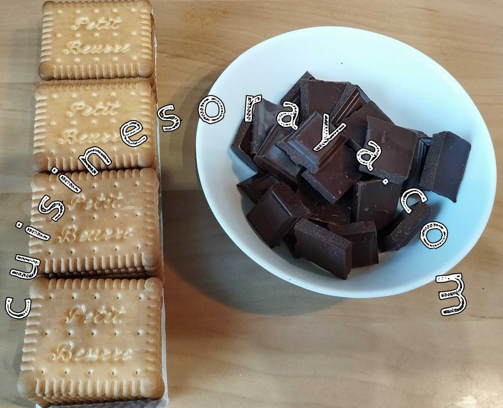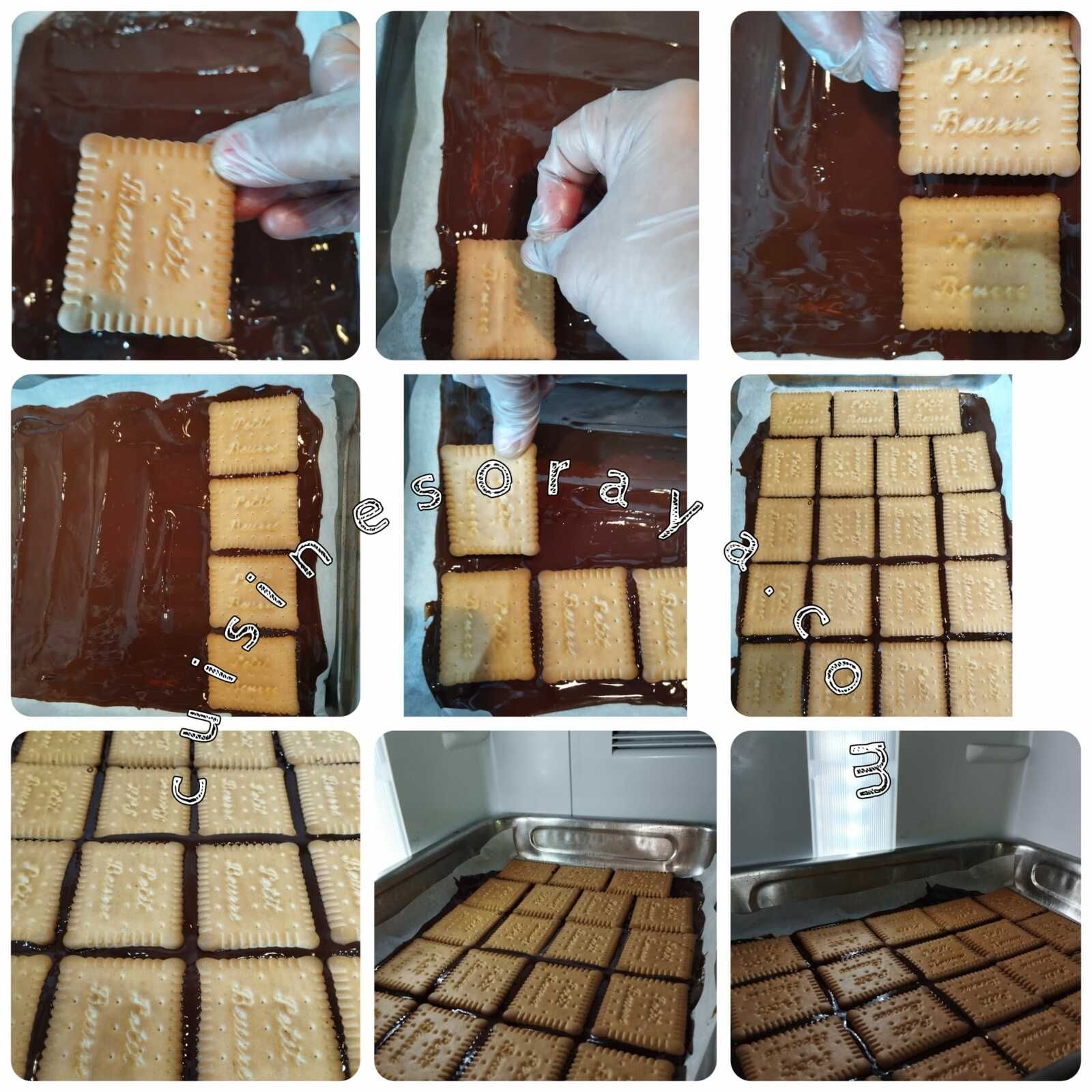 – Placez les biscuits sur le chocolat, couvrant toute la surface.