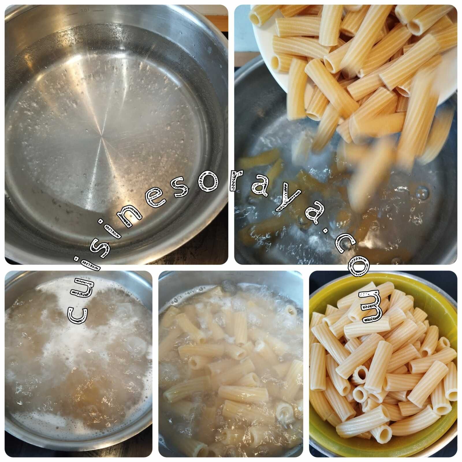 – Faites cuire vos pâtes dans un grand volume d'eau en suivant le temps préconisé sur le paquet. Egouttés vos pâtes et passez-les sous l'eau froide pour stopper la cuisson. Réserver.